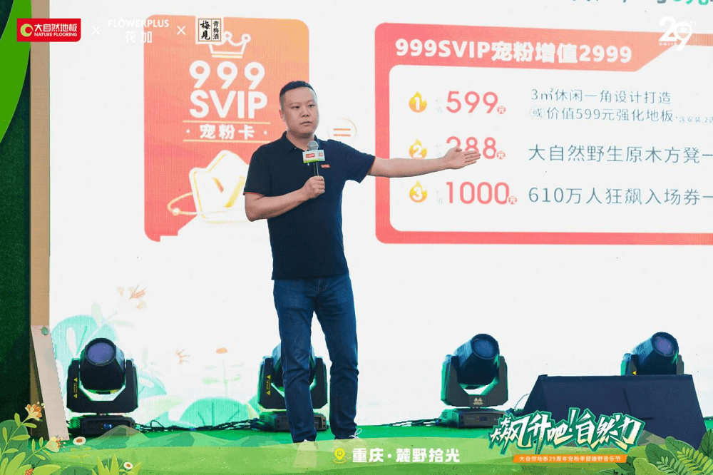 為了回饋新老客戶的信任與支持,與新消費力量同頻共振,大自然地板重慶分公司總經(jīng)理王凱表示:本次活動集團總裁攜百萬豪禮回饋重慶老客戶朋友,現(xiàn)場首發(fā)999SVIP權(quán)益卡100張,為消費提供價值2999元寵粉大禮包,致敬所有客戶的信任與支持。