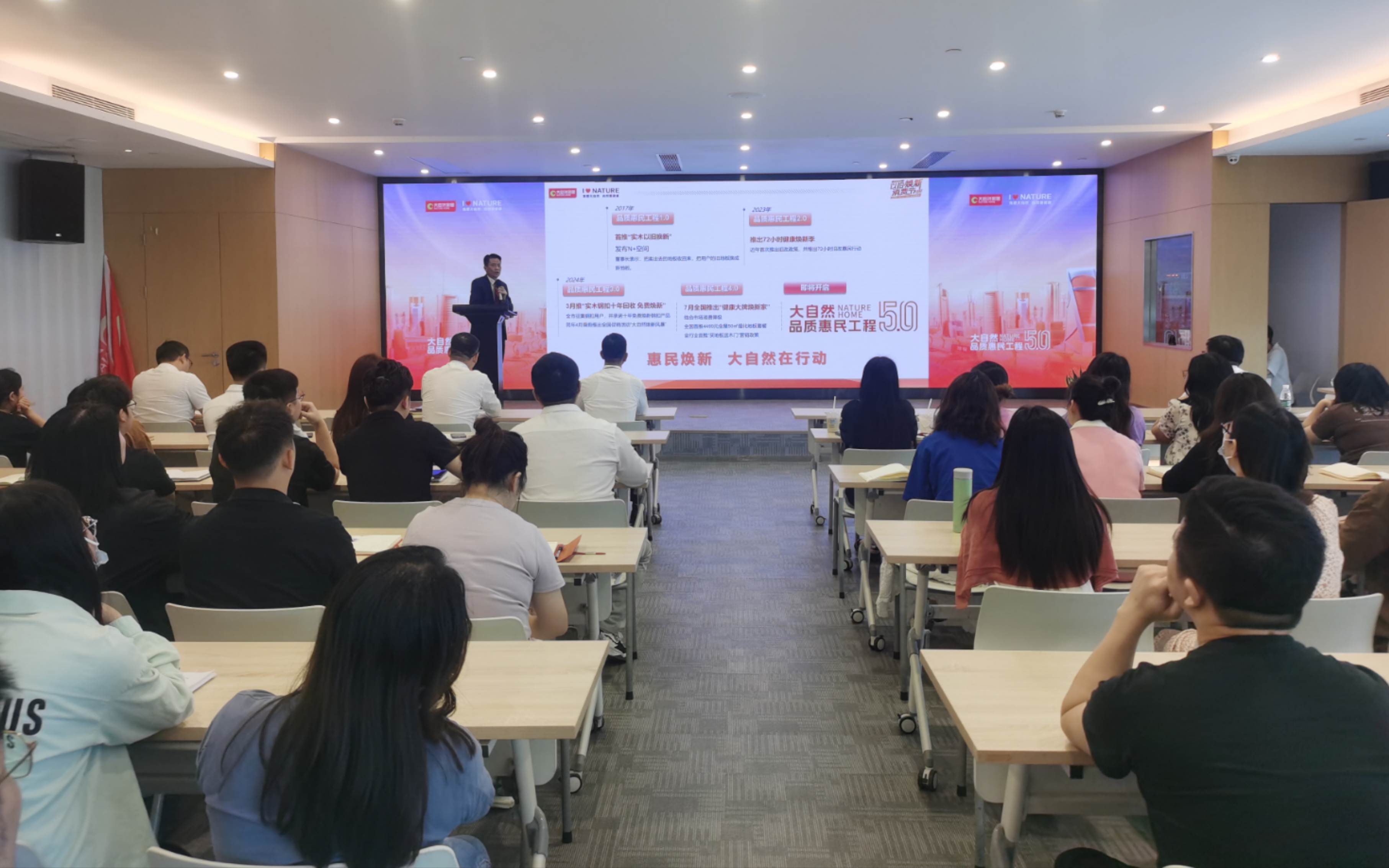 在品質(zhì)惠民工程5.0啟動儀式上,大自然家居董事長佘學(xué)彬表示:改造城鎮(zhèn)老舊小區(qū),是全國各地政府促進(jìn)城市更新的重要發(fā)展舉措。本次“以舊煥新”消費(fèi)節(jié)——國慶季暨品質(zhì)惠民工程第5期活動,與前4期一脈相承,以為用戶提供質(zhì)價(jià)俱優(yōu)服務(wù)為活動準(zhǔn)則,目的是要切實(shí)解決有舊改需求的客戶【去舊】【換新】兩大痛點(diǎn),不忘初心為舊改用戶提供健康環(huán)保省心服務(wù)體驗(yàn)。