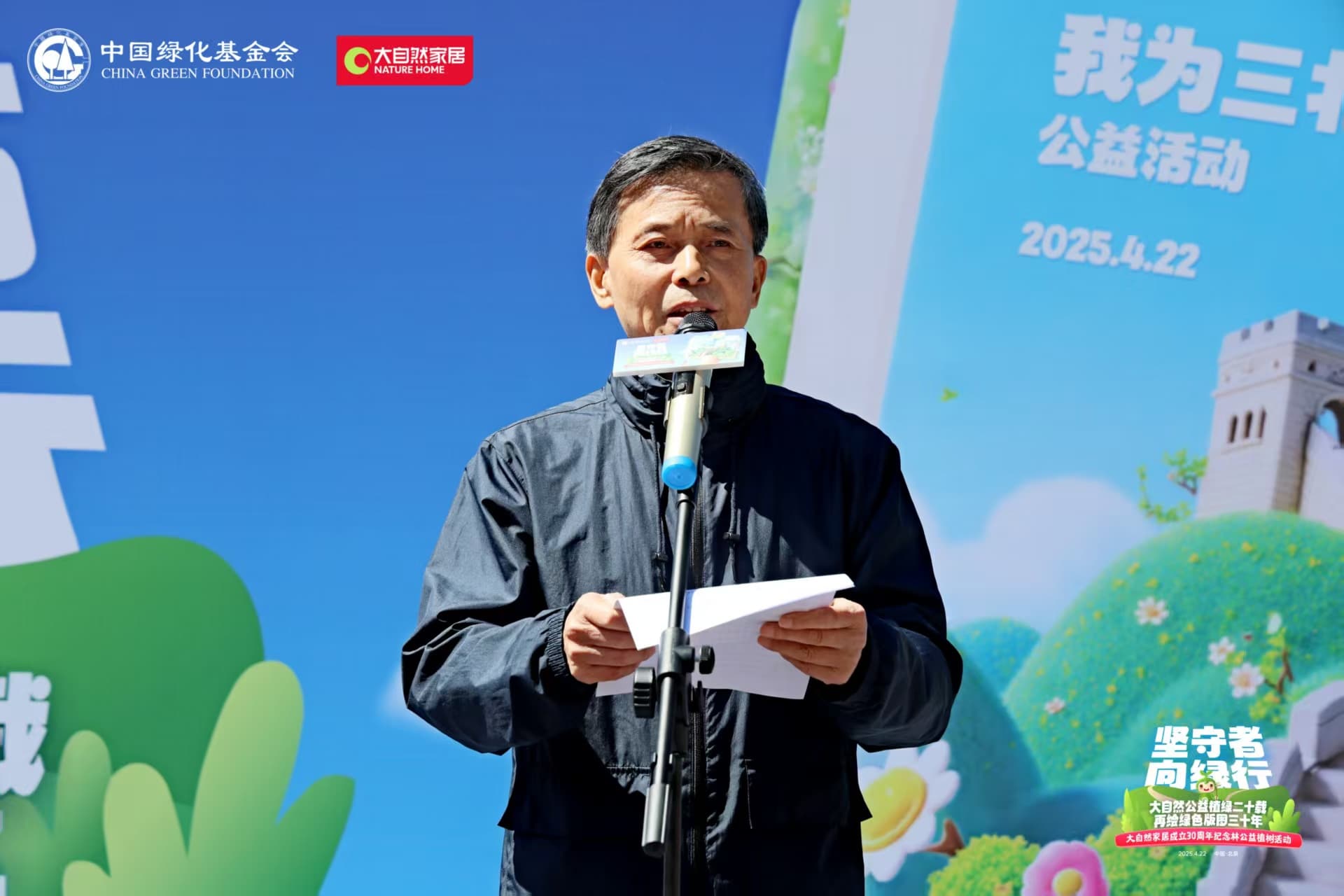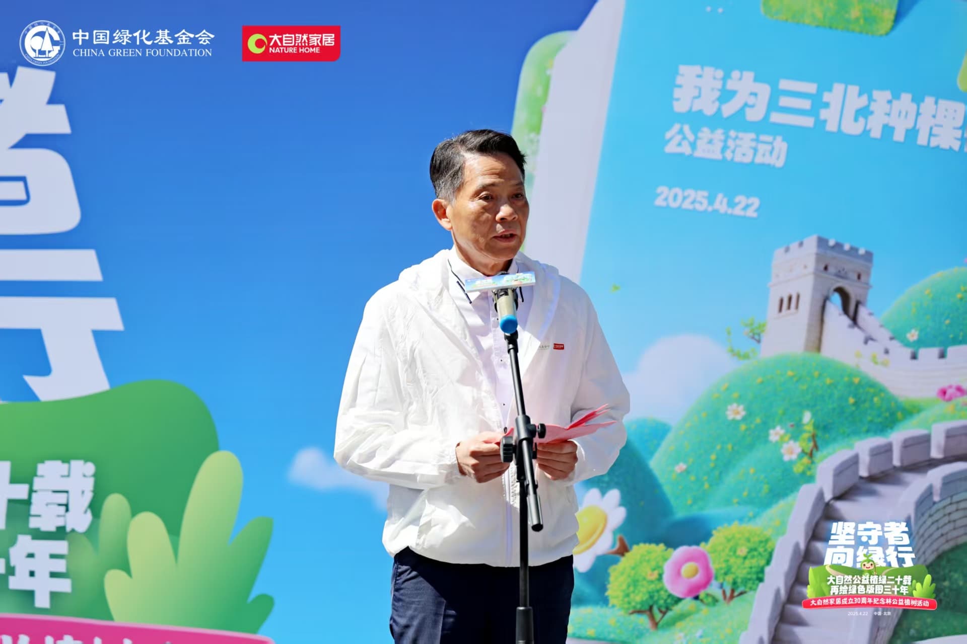 活動在中國綠化基金會副主席陳蓬的主持下拉開帷幕。北京市園林綠化局二級巡視員 王小平在致辭中強(qiáng)調(diào):生態(tài)修復(fù)需要政府、企業(yè)、社會三方合力,大自然家居成立30年、20年植樹超百萬棵的實踐,為企業(yè)參與生態(tài)文明建設(shè)提供了范本。
