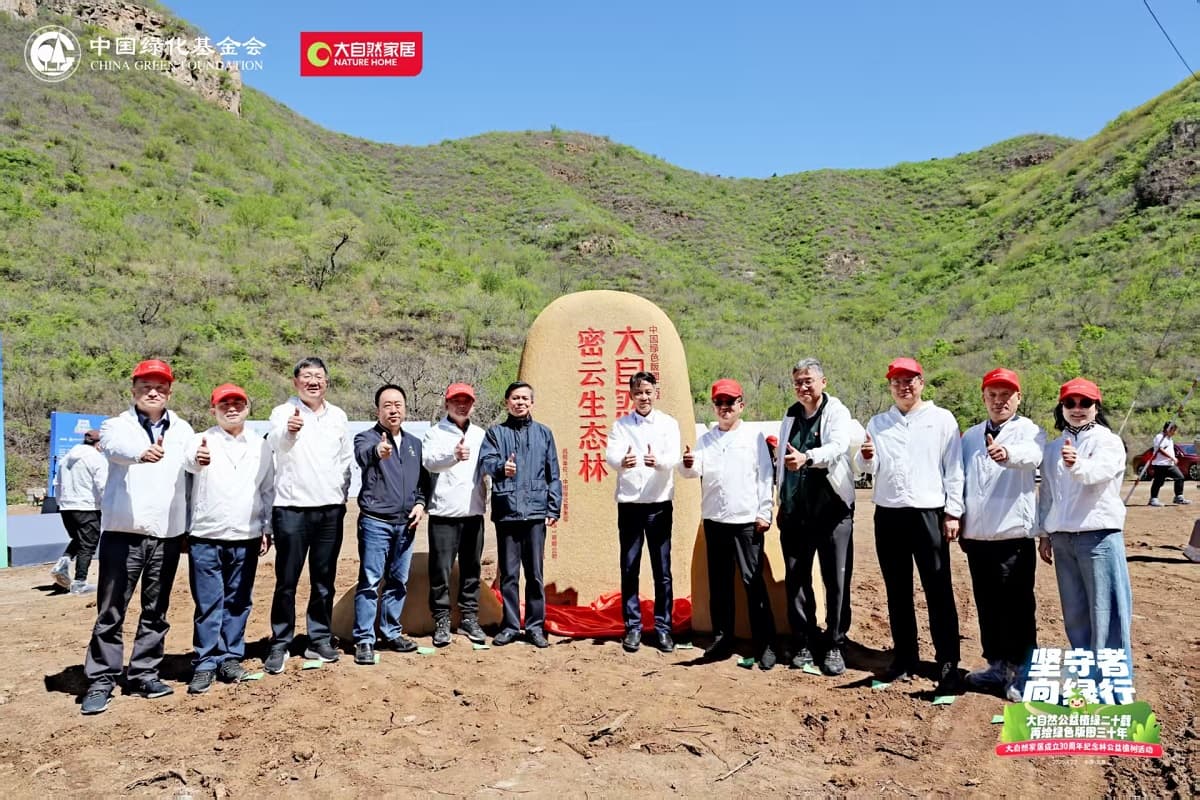 在密云生態(tài)林揭幕儀式上,中國綠化基金會主席陳述賢、大自然家居董事長佘學(xué)彬、北京市園林綠化局二級巡視員王小平、中國綠化基金會副主席徐濟(jì)德、中國林業(yè)產(chǎn)業(yè)聯(lián)合會會長封加平、中國綠化基金會副主席陳蓬、中國綠化基金會副主席葉智、中國綠化基金會秘書長張全洲、中國木材保護(hù)工業(yè)協(xié)會會長劉能文、中國木材與木制品流通協(xié)會會長李佳峰、大自然家居副董事長袁順意等,共同為“大自然30周年紀(jì)念林”揭幕。密云生態(tài)紀(jì)念林的落地,不僅見證了大自然家居30年來在綠色發(fā)展道路上的堅守,更彰顯了其將可持續(xù)發(fā)展理念轉(zhuǎn)化為產(chǎn)業(yè)實踐的戰(zhàn)略定力。