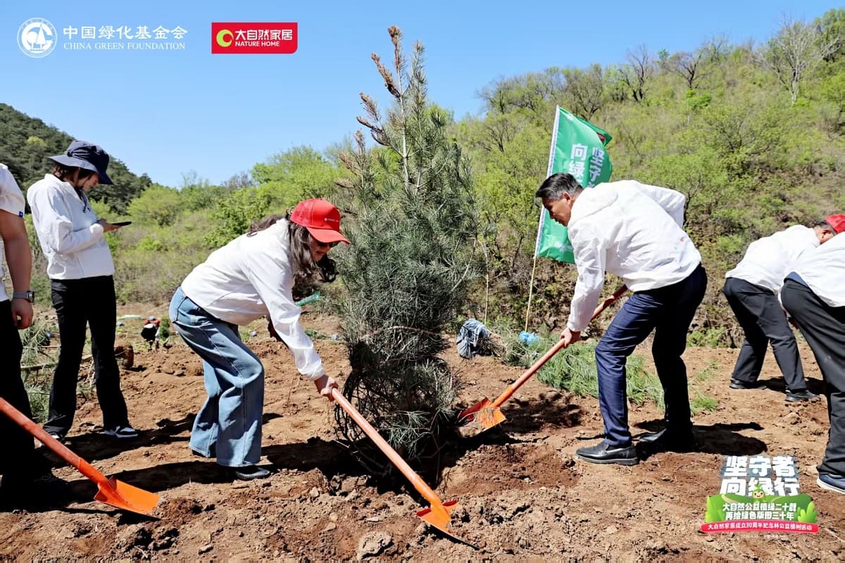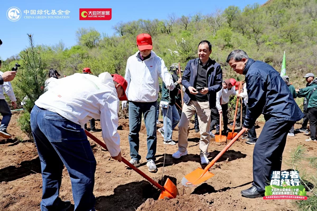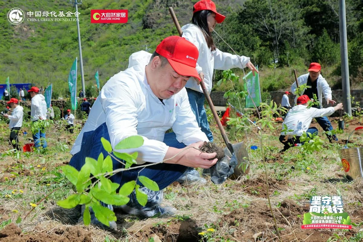 4月22日,值第56個世界地球日之際,大自然家居攜手中國綠化基金會,于北京密云區(qū)啟動“堅守者·向綠行”公益植樹活動。大自然家居以“成立30年、植樹20年”的雙里程碑,交出了一份“綠色智造”與“生態(tài)反哺”共生的可持續(xù)發(fā)展答卷?;顒蝇F(xiàn)場,中國綠化基金會、北京市園林綠化局、北京林學(xué)會、中國林業(yè)科學(xué)研究院、中國林產(chǎn)工業(yè)協(xié)會、中國林業(yè)產(chǎn)業(yè)聯(lián)合會、中國木材保護(hù)工業(yè)協(xié)會、中國木材與木制品流通協(xié)會代表,大自然家居高層管理人員、全國核心經(jīng)銷商和供應(yīng)商代表,媒體以及大自然家居消費(fèi)者、公益植樹環(huán)保志愿者等各界人士,見證“中國綠色版圖”公益工程20年成果及未來十年計劃啟動。
