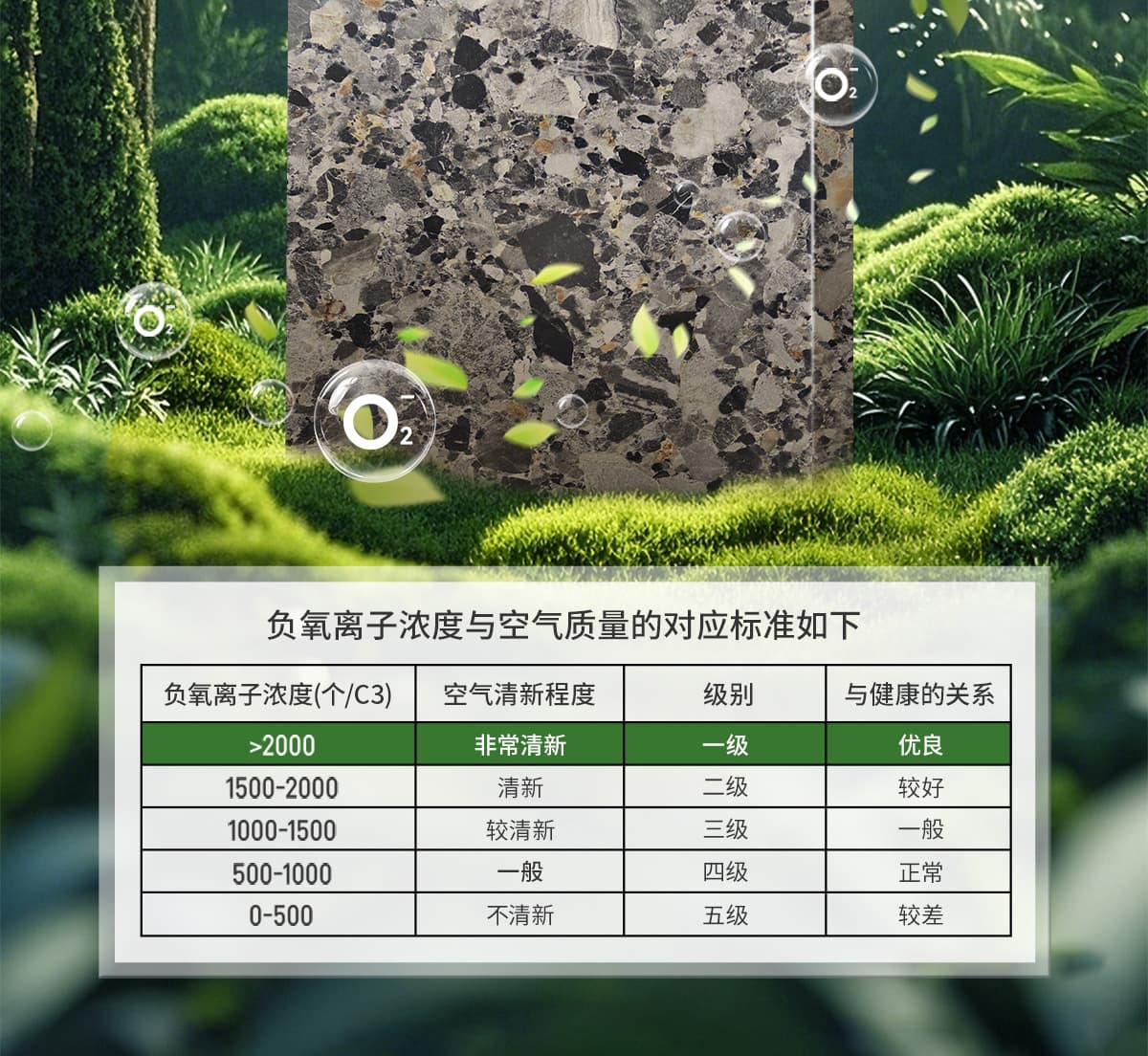 | 誘發(fā)空氣負(fù)離子量 | 比基礎(chǔ)環(huán)境提高10倍+ |