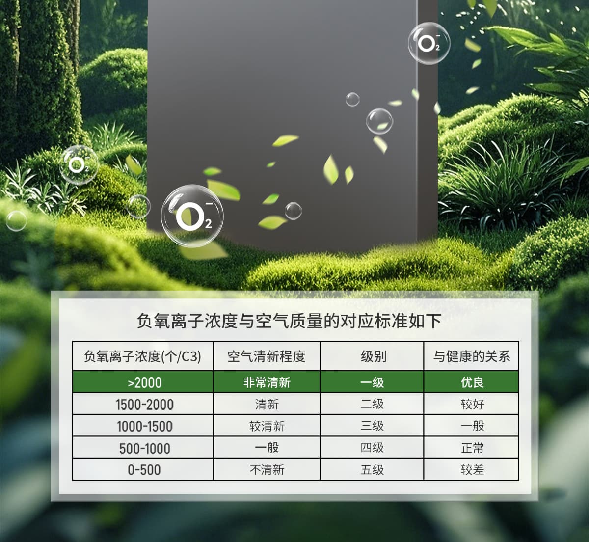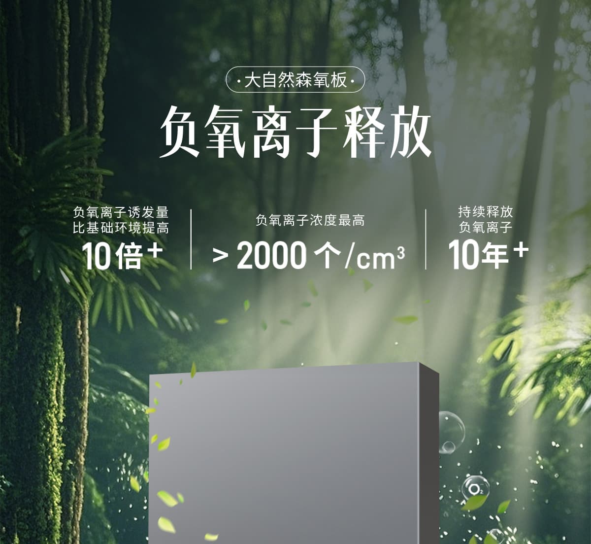 誘發(fā)空氣負(fù)離子量 比基礎(chǔ)環(huán)境提高10倍+